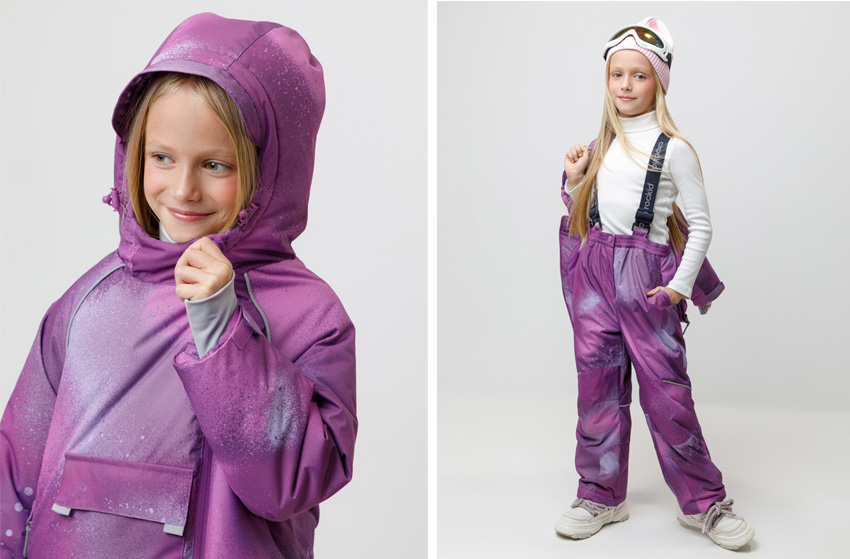 - Удобство для родителей и детей. Мы уделяем внимание деталям: вшиваем удобные молнии, надежные застежки, регулируемые манжеты и подтяжки. Светоотражающие элементы присутствуют на каждой модели.